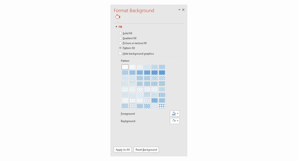 این گزینه امکان انتخاب یک پس زمینه ساده با طرح های مختلف شطرنجی، نقطه ای، خطی را فراهم می کند تا یک اسلاید ساده ولی در عین حال غیر یکنواخت داشته باشید. این نوع از طراحی برای اسلایدهای شرکتی یا سیاه و سفید مناسبتر است.