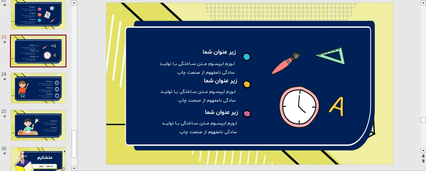 این پاورپوینت در قالب pptx. یا همان ppt. قابل دانلود میباشد. اینفوگرافیک ریاضی رایگان در محیط Microsoft Powerpoint طراحی شده و در 27 اسلاید در اختیار شما قرار داده شده است. کیفیت و صحت اطلاعات مربوط به این پاورپوینت توسط تیم نشریه فارسی درس تایید شده است و شما با چند کلیک میتوانید به راحتی این پاورپوینت را دریافت کنید. درصورت بروز هرگونه اشکال میتوانید با ما در تماس باشید.