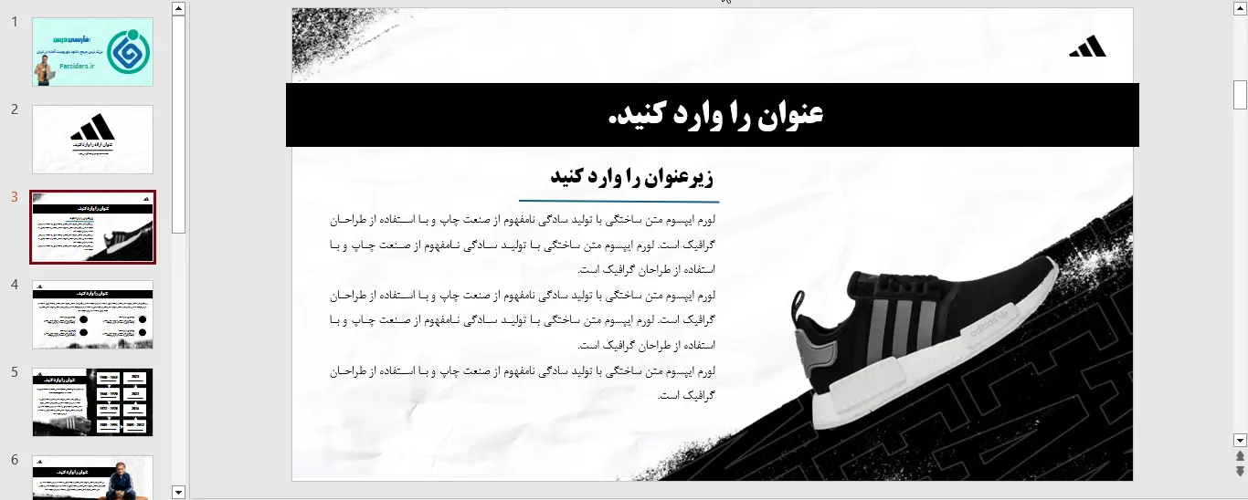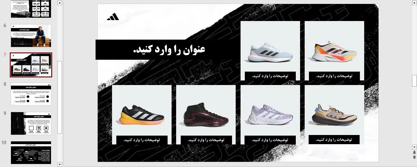 نمونه ای از اسلاید های قالب پاورپوینت رایگان آدیداس