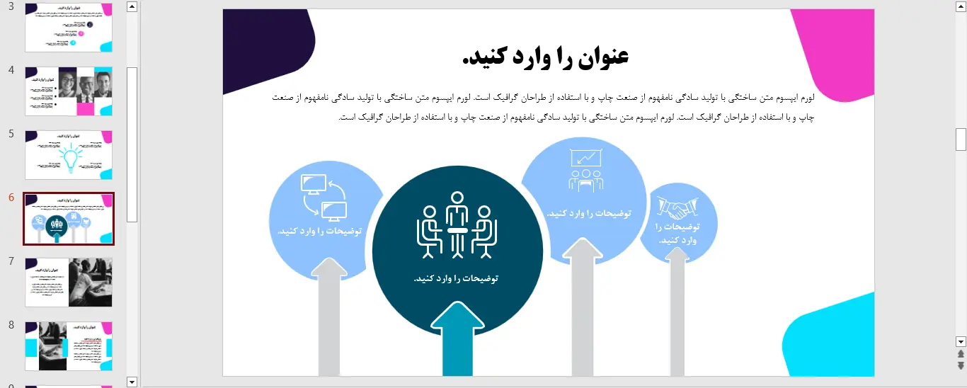 در نتیجه اگر می خواهید ارائه شما تاثیرگذار و منظم به نظر برسد، پیشنهاد می کنیم حتما از قالب پاورپوینت رایگان آموزشی استفاده کنید تا کیفیت تدریس و جذابیت بصری اسلایدهای خود را افزایش دهید.