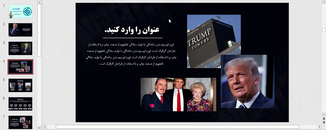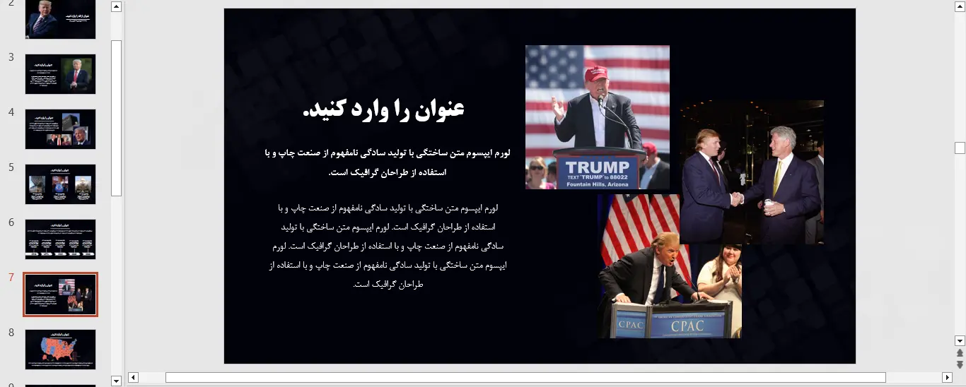 نمونه ای از اسلاید های قالب پاورپوینت رایگان دونالد ترامپ