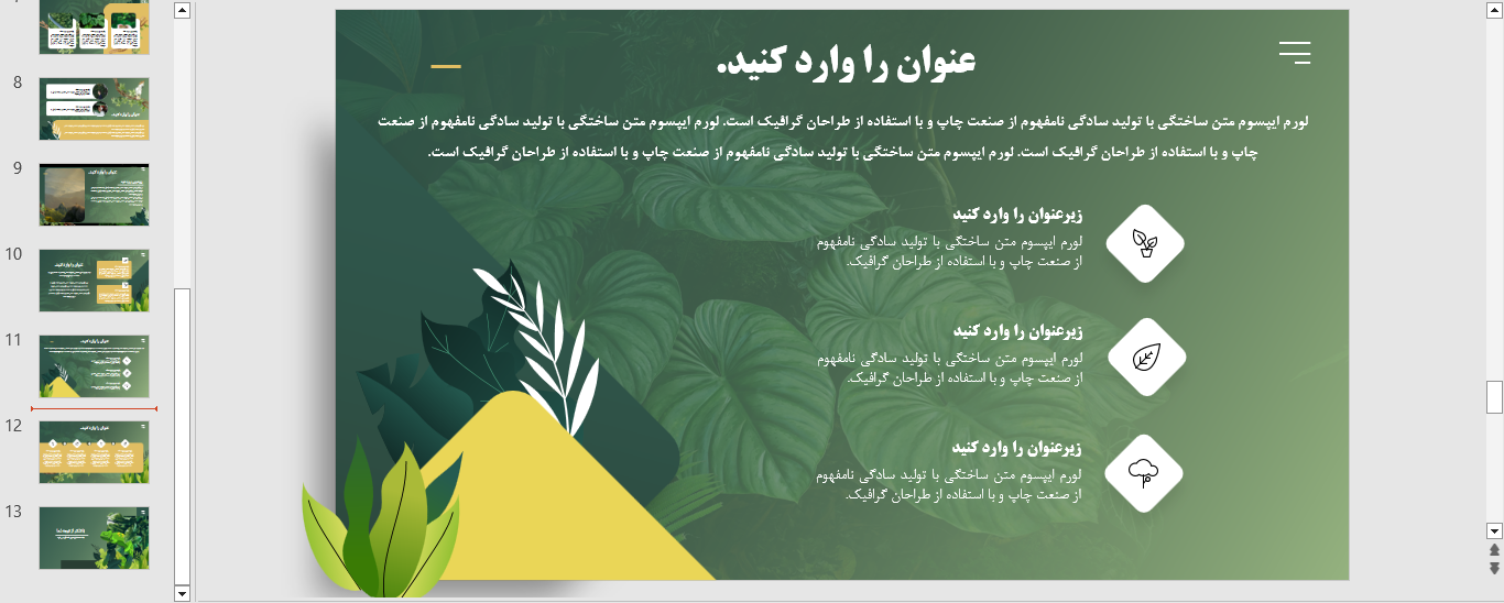 نمونه ای از اسلاید های قالب پاورپوینت رایگان طبیعت