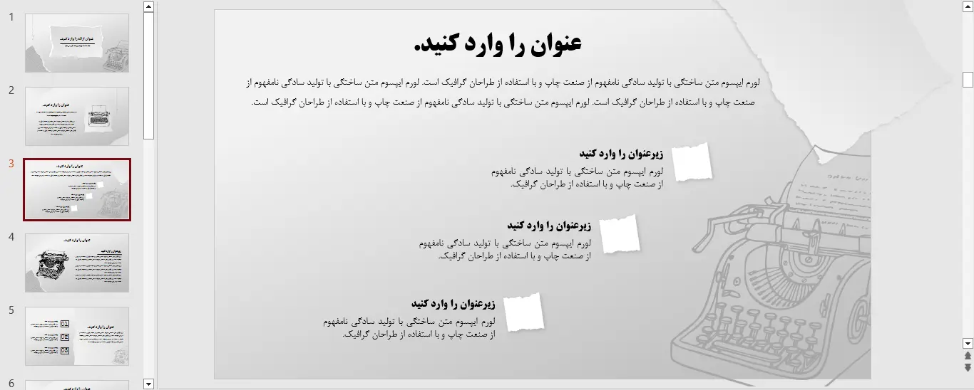 نمونه ای از اسلاید های قالب پاورپوینت رایگان ماشین تحریر