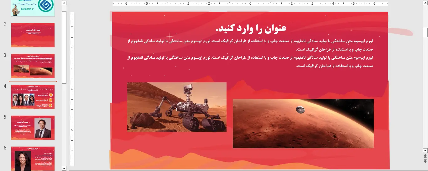 نمونه ای از اسلاید های قالب پاورپوینت رایگان ماموریت مریخ