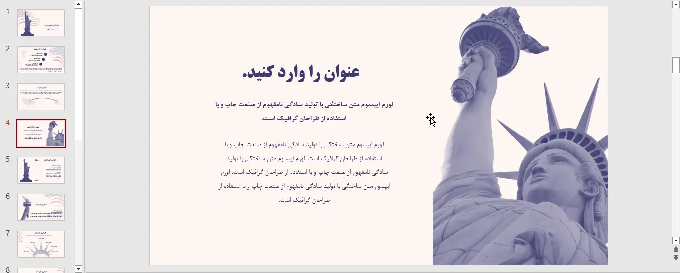 نمونه ای از اسلاید های قالب پاورپوینت رایگان مجسمه آزادی
