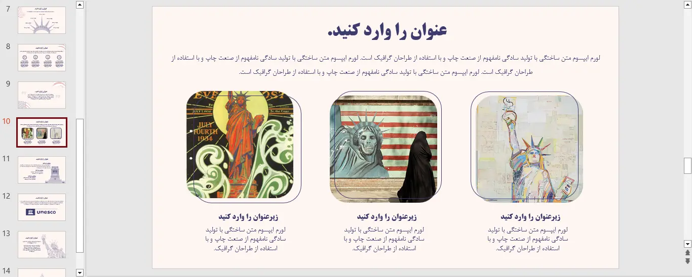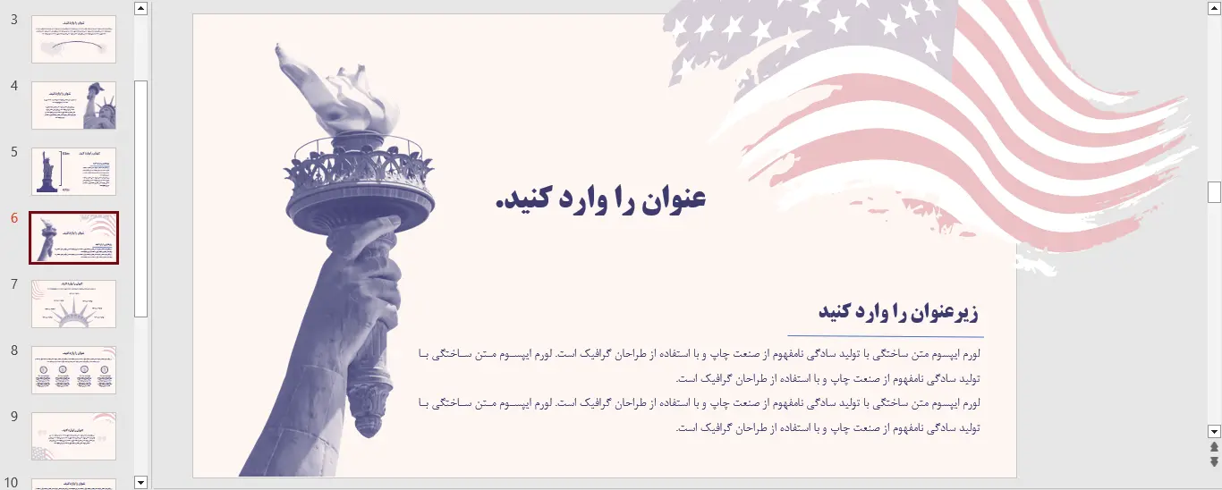 اگر قصد دارید درباره یکی از مهم ترین آثار تاریخی جهان صحبت کنید، حتما از قالب پاورپوینت رایگان مجسمه آزادی استفاده کنید تا ارائه شما حرفه ای و جذاب باشد.
