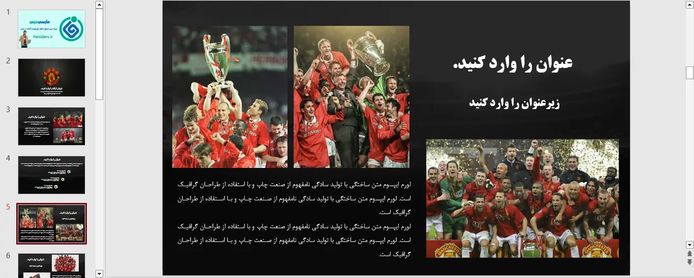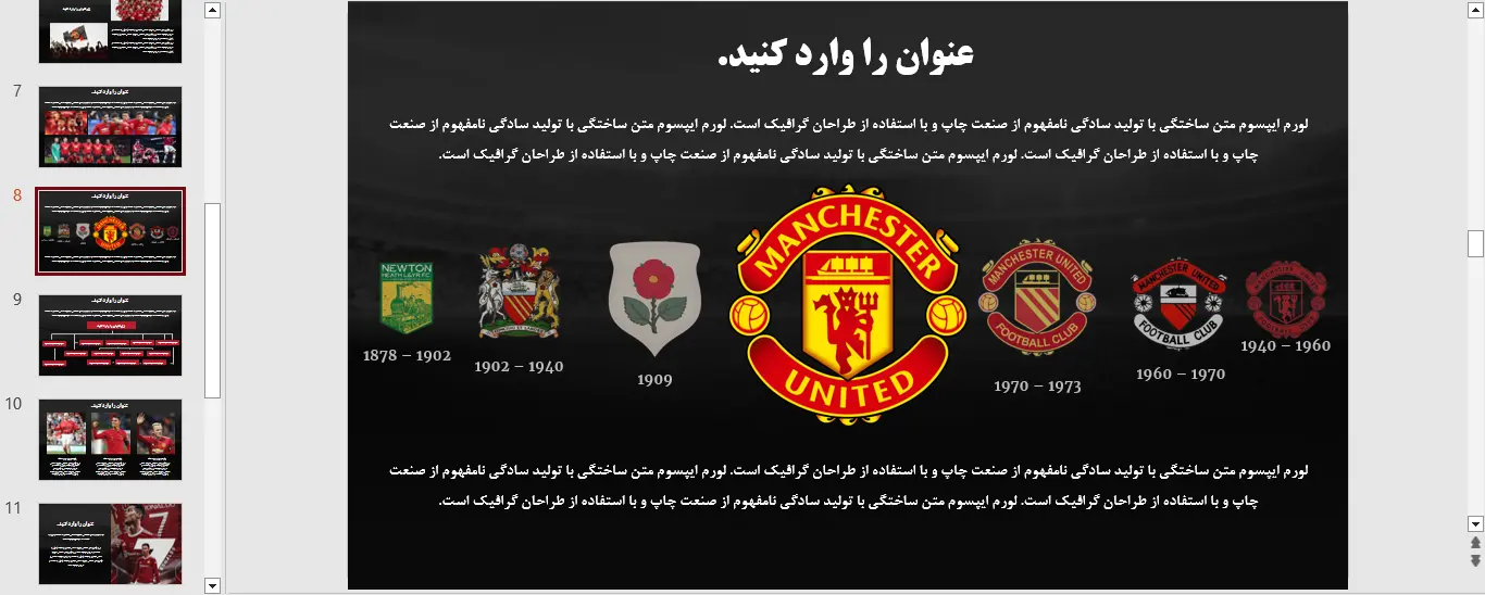 نمونه ای از اسلاید های قالب پاورپوینت رایگان منچستریونایتد