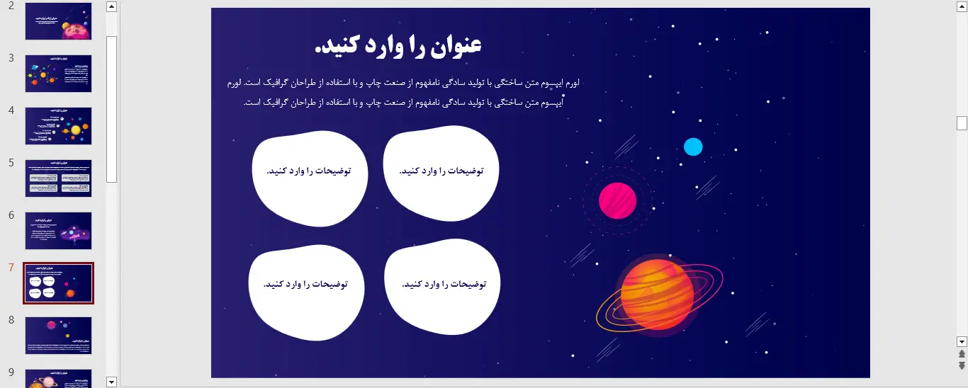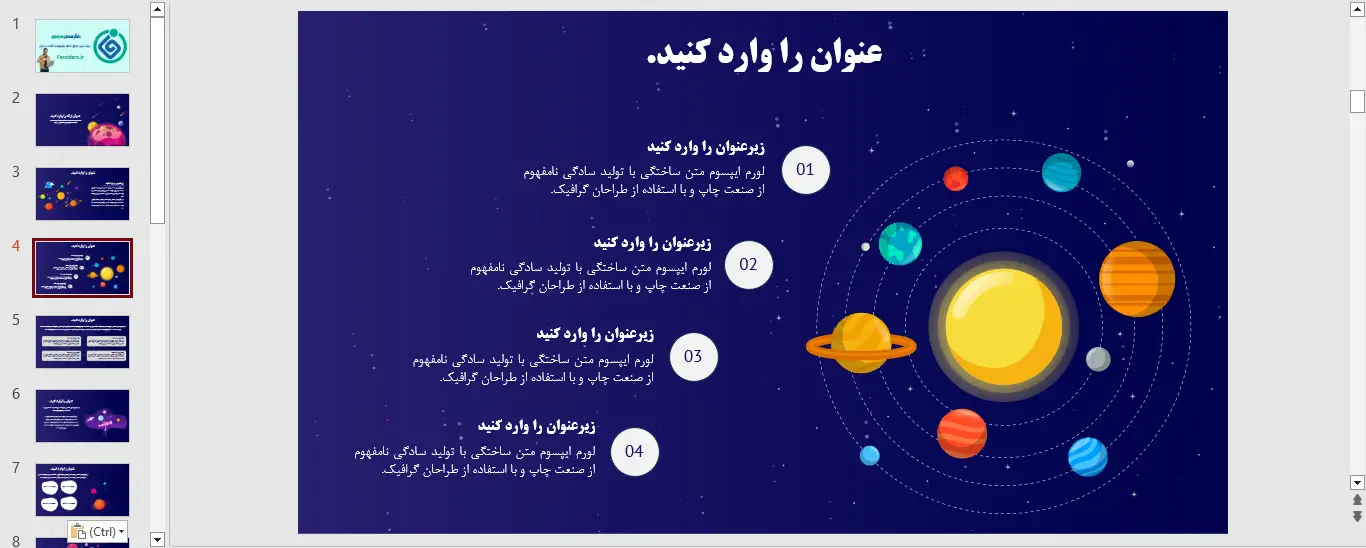 نمونه ای از اسلاید های قالب پاورپوینت رایگان نجوم