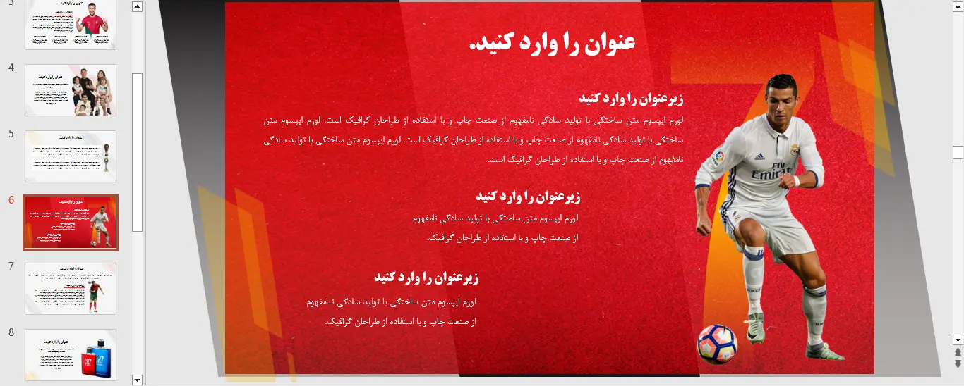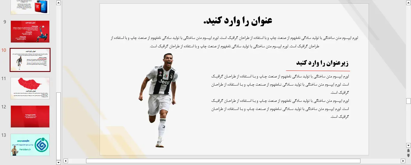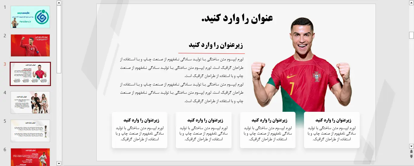 نمونه ای از اسلاید های قالب پاورپوینت رایگان کریستیانو رونالدو