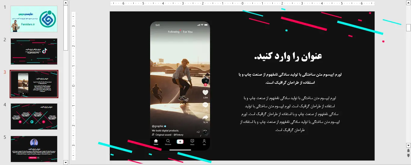 نمونه ای از اسلاید های قالب پاورپوینت رایگان Tiktok