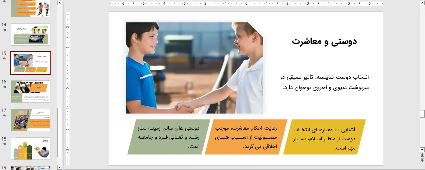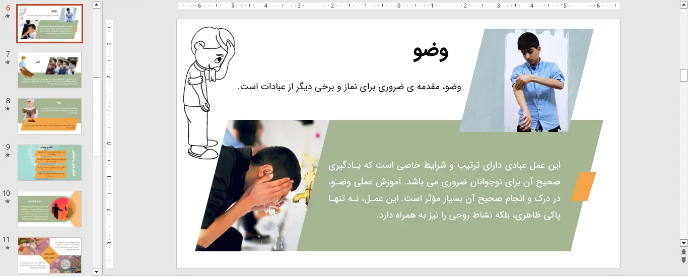 آموزش احکام باید از قالب های خشک و پیچیده فاصله بگیرد. در دنیای امروز، رسانه های دیجیتال حرف اول را می زنند. یک پاورپوینت احکام برای نوجوانان که با تصاویر جذاب، نمودارهای ساده و زبان امروزی طراحی شده باشد، می تواند مفاهیمی مانند طهارت، نماز، روزه و حلال و حرام را به شکلی ملموس منتقل کند.