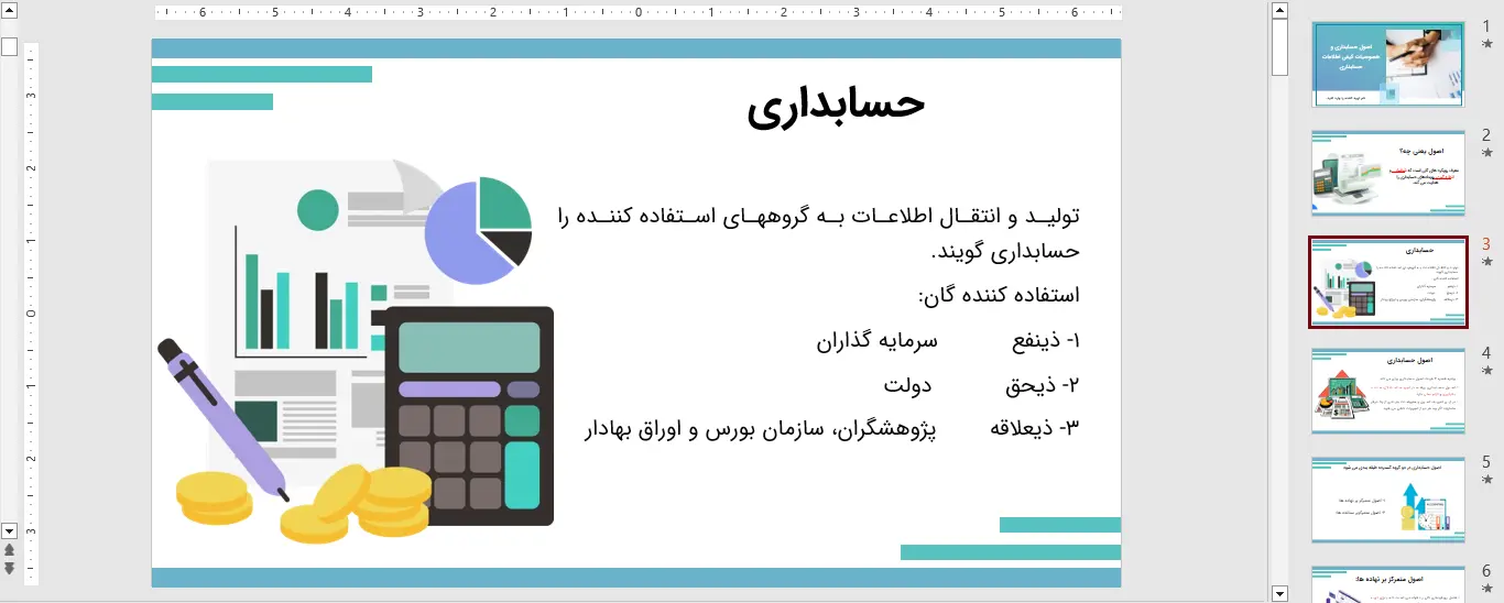 نمونه ای از اسلاید های پاورپوینت اصول حسابداری و خصوصیات کیفی اطلاعات حسابداری