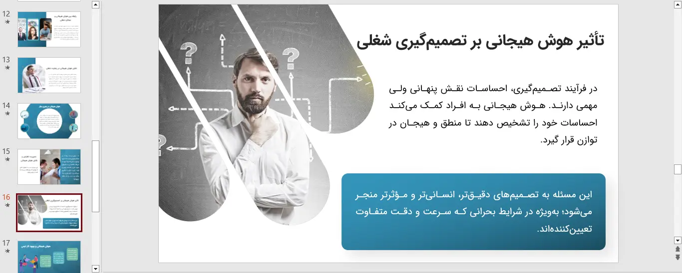 نمونه ای از اسلاید های پاورپوینت تأثیر هوش هیجانی بر موفقیت شغلی