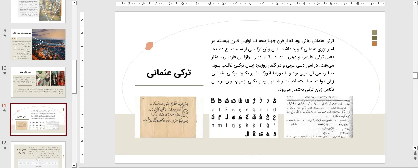 نمونه ای از اسلاید های پاورپوینت تاریخچه زبان ترکی