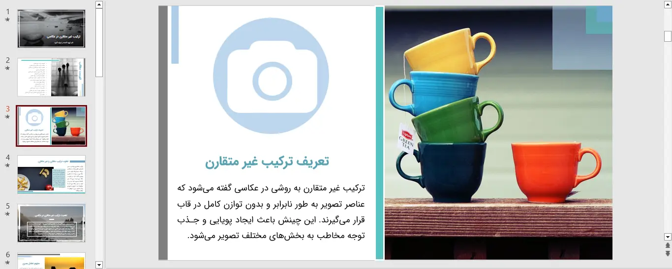 نمونه ای از اسلاید های پاورپوینت ترکیب غیر متقارن در عکاسی