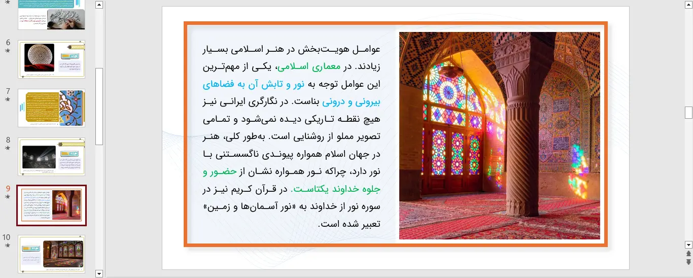 نمونه ای از اسلاید های پاورپوینت درس 4 هنر دهم و یازدهم مشترک – خصایص فرهنگ ایرانی اسلامی