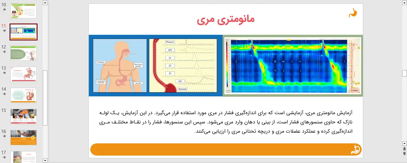 افراد زیادی به دنبال منابع معتبر برای یادگیری و آموزش در مورد این بیماری هستند و یک پاورپوینت ریفلاکس معده که به خوبی طراحی شده باشد، می تواند اطلاعات پیچیده پزشکی را به شکلی ساده و قابل فهم ارائه دهد. این اسناد بصری باید شامل جزئیات دقیقی درباره مکانیسم بیماری، تفاوت آن با سوزش سر دل معمولی، و همچنین اثرات بلند مدت آن باشند.