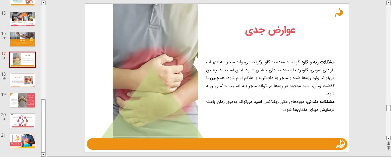 نمونه ای از اسلاید های پاورپوینت ریفلاکس معده