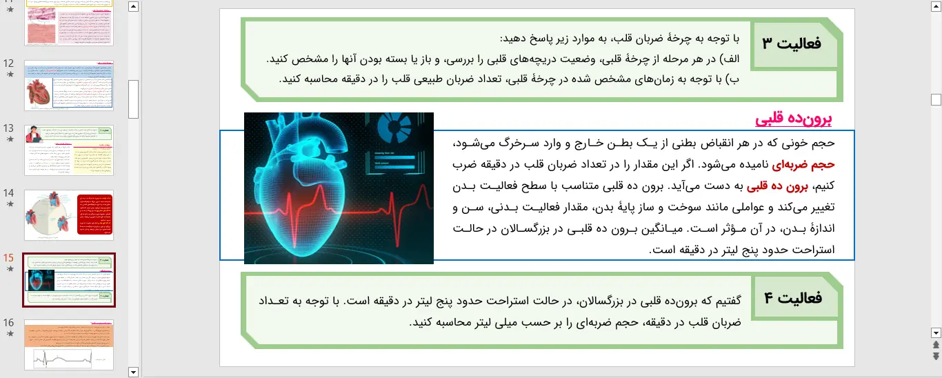 پاورپوینت آماده ارائه شده در مورد زیست شناسی (1) پایه دهم فصل 4 چهارم – گردش مواد در بدن به شکل کامل و جامع تهیه و تدوین شده است. این ارائه با تصاویر گویا و جذابی که در خود دارد دانش آموزان را برای فراگیری و استفاده کامل از آن وا می دارد. یکی از بهترین پاورپوینت هایی که می توانید در بستر اینترنت در مورد موضوع ذکر شده پیدا کنید را در اختیار شما قرار داده ایم و امیدواریم از مطالب آن نهایت استفاده را ببرید. ارائه کامل و جذاب شما از اهداف مجموعه فارسی درس است و تلاش ما برداشتن قدم هایی هر چند کوچک در راستای اهداف شما است.