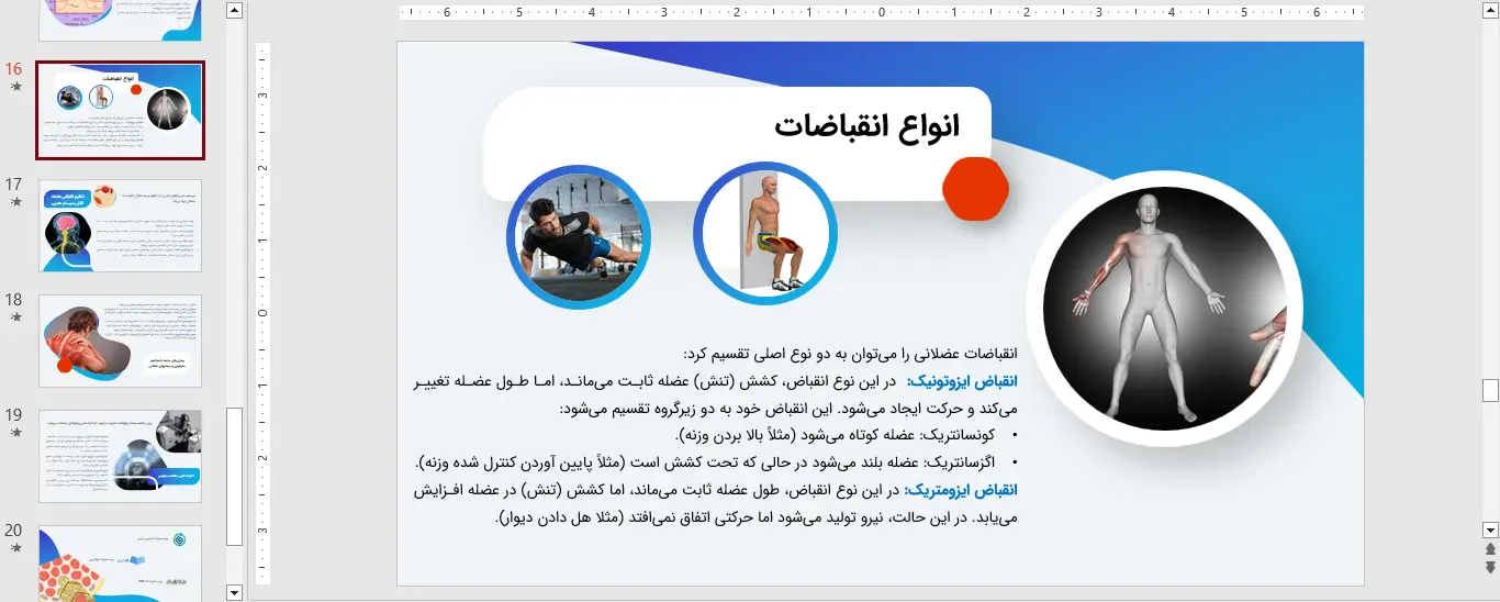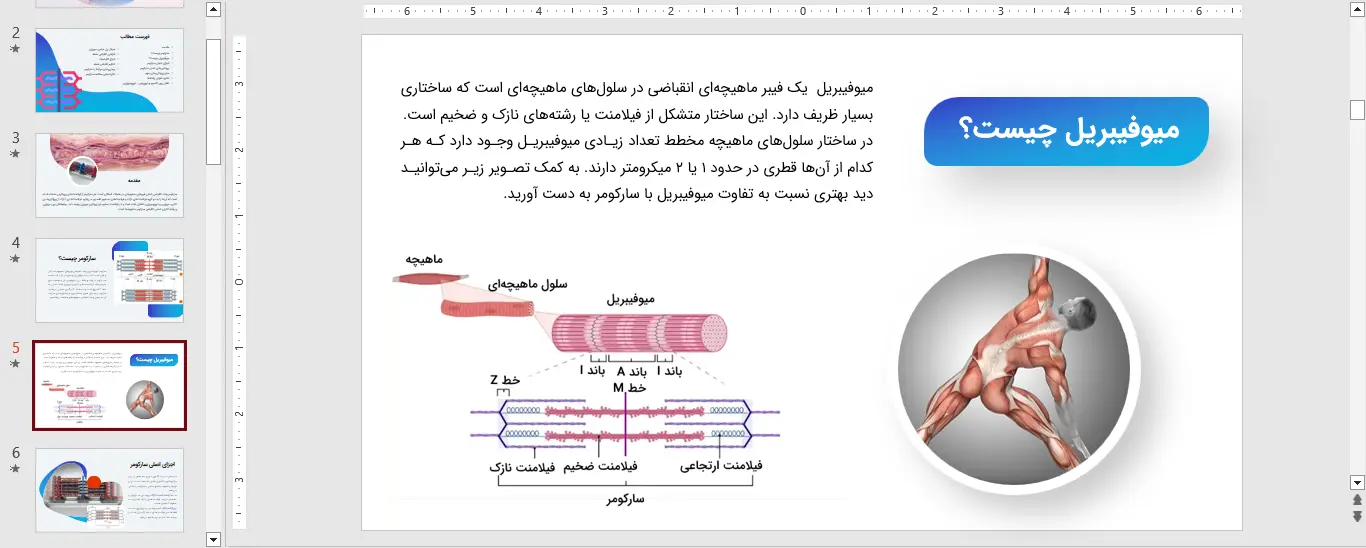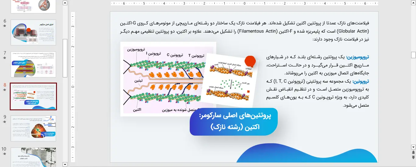 با استفاده از یک پاورپوینت سارکومر با کیفیت، می توانید ساختار سه بعدی، مکانیسم لغزش رشته ها و اهمیت بالینی این واحد عضلانی را به وضوح به مخاطبان خود نمایش دهید. این ابزار آموزشی قدرتمند، به شما امکان می دهد تا مبحث سارکومر را به شکلی سازمان یافته و عمیق ارائه دهید و تأثیرگذاری تدریس یا سخنرانی خود را به حداکثر برسانید.