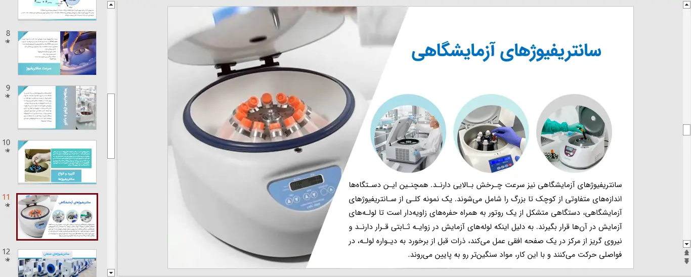 اهمیت درک مکانیسم دقیق کارکرد و کاربردهای متنوع سانتریفیوژ در آزمایشگاه های شیمی بسیار بالاست. برای آموزش مؤثر این مفاهیم پیچیده، استفاده از منابع بصری قوی توصیه می شود. در این زمینه، پاورپوینت سانتریفیوژ در شیمی به عنوان یک ابزار آموزشی کلیدی شناخته می شود.