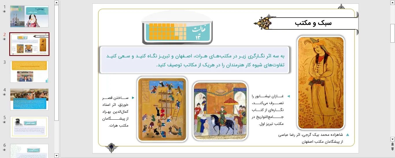 نمونه ای از اسلاید های پاورپوینت درس 1 هنر دهم و یازدهم مشترک – سبک و مکتب