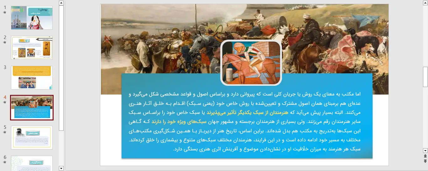 جزئیات و دانلود پاورپوینت سبک و مکتب پودمان 1 هنر دهم و یازدهم – سال تحصیلی 1405-1404