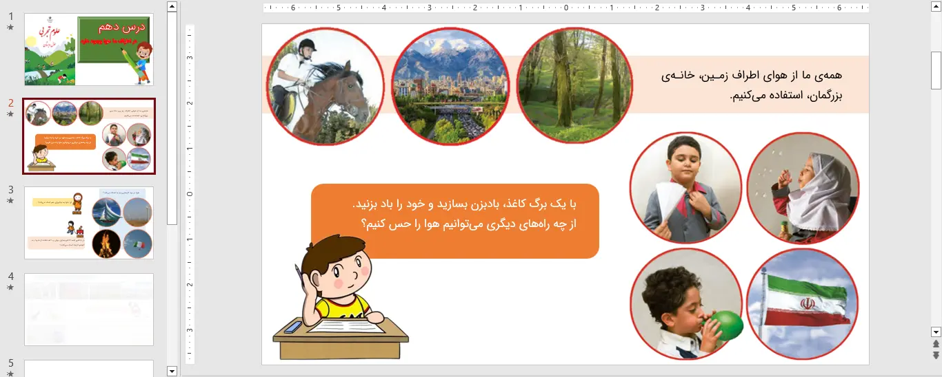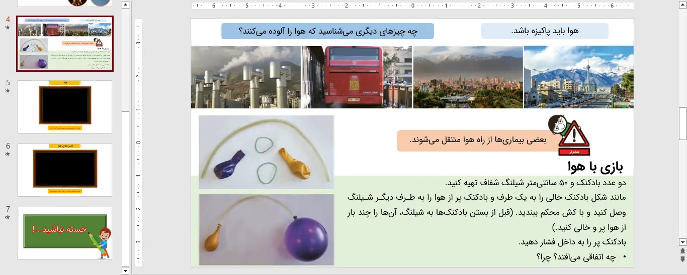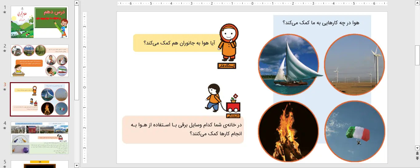 جزئیات و دانلود پاورپوینت علوم اول درس دهم – در اطراف ما هوا وجود دارد سال تحصیلی 1405-1404