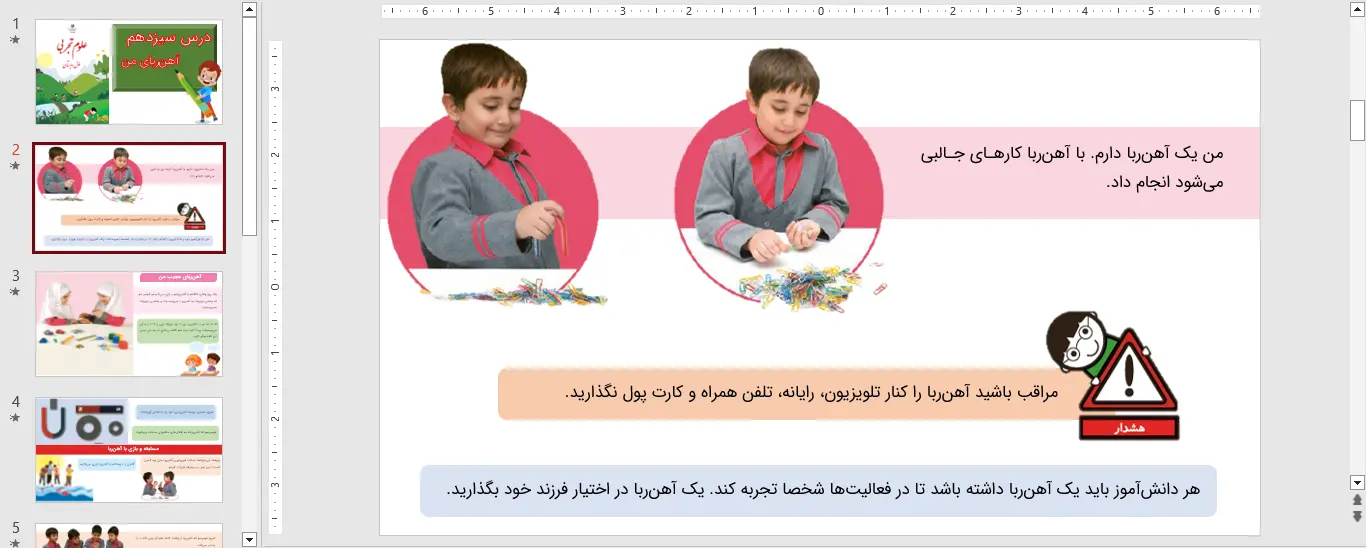 نمونه ای از اسلاید های پاورپوینت علوم اول درس سیزدهم – آهن‌ربای من