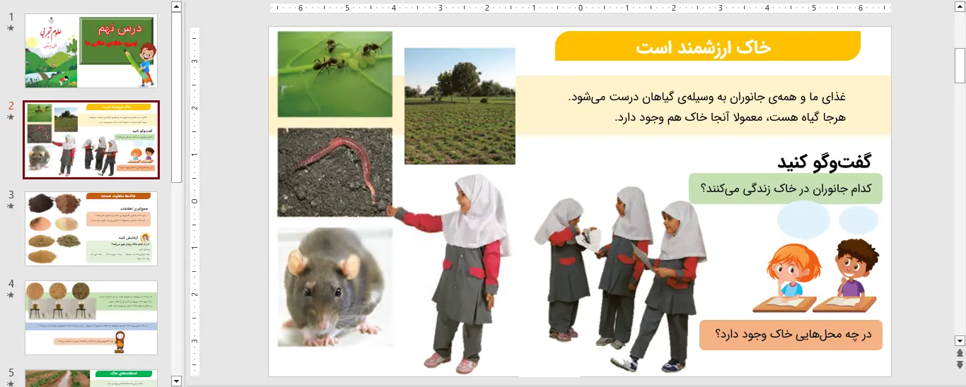 نمونه ای از اسلاید های پاورپوینت علوم اول درس نهم – زمین، خانهی خاکی ما