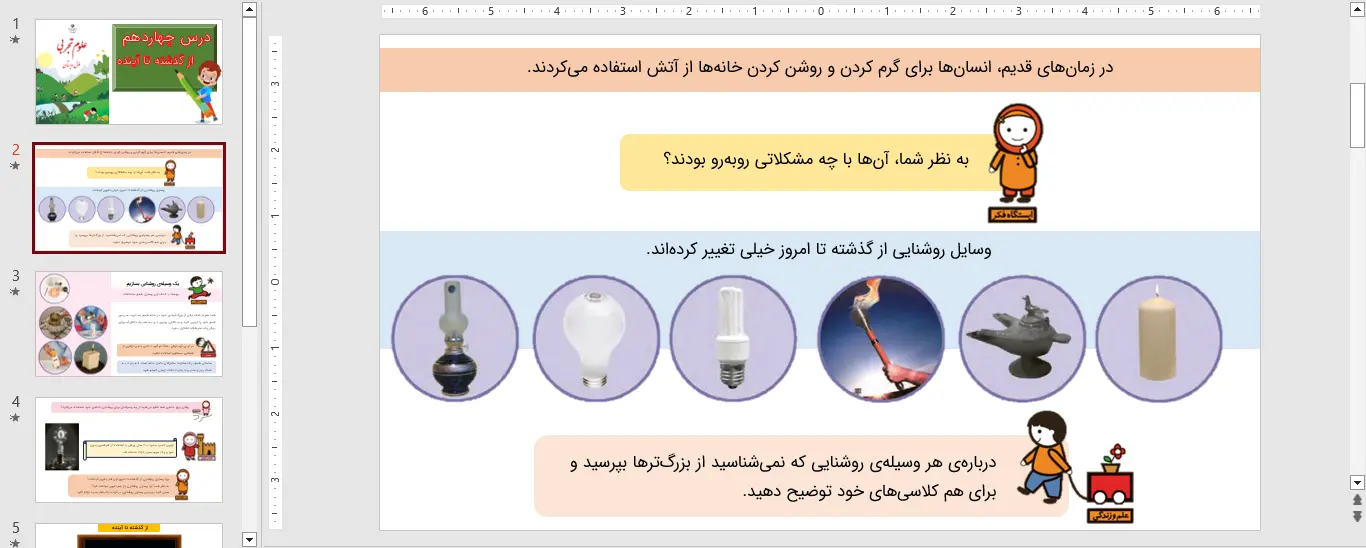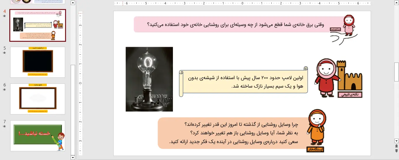 دربارهی هر وسیلهی روشنایی که نمیشناسید از بزرگترها بپرسید و برای هم کلاسیهای خود توضیح دهید.