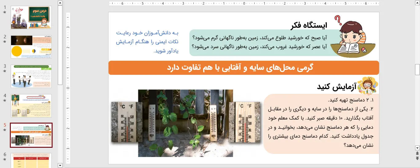 پاورپوینت علوم دوم درس سوم – زندگی ما و گردش زمین 1 در قالب ppt. یا pptx. میباشد و با اسلاید های گرافیکی و جذاب به شما کمک میکند یک تدریس و یا ارائه بینظیر داشته باشید. با دانلود این پاورپوینت میتوانید به راحتی آن را ویرایش و شخصیسازی کنید. این پاورپوینت مطابق با آخرین ویرایش کتب درسی (سال تحصیلی 1404-1405) می باشد.