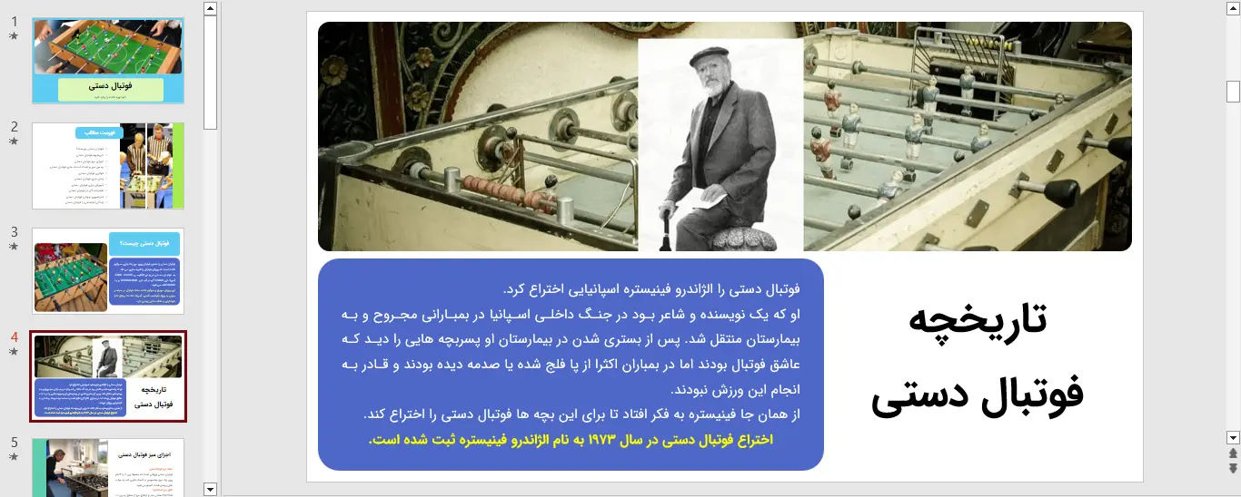 نمونه ای از اسلاید های پاورپوینت فوتبال دستی