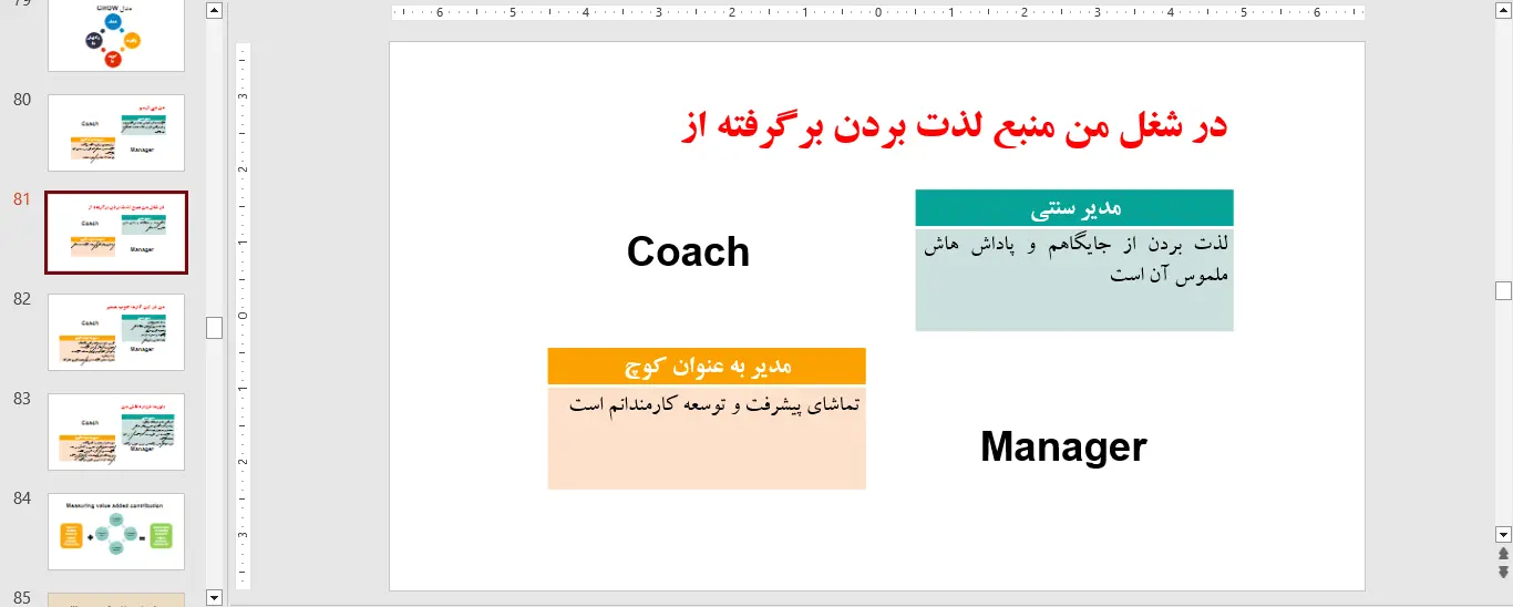 نمونه ای از اسلاید های پاورپوینت مدیر در نقش کوچ