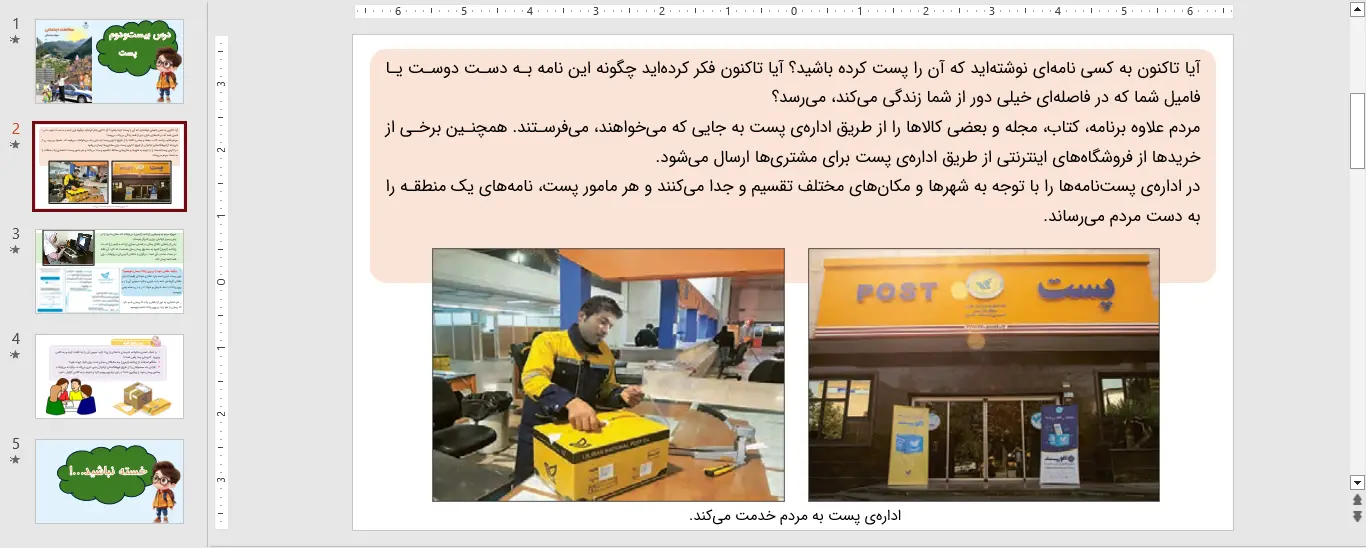 نمونه ای از اسلاید های پاورپوینت مطالعات اجتماعی سوم درس 22 بیست و دوم – پست