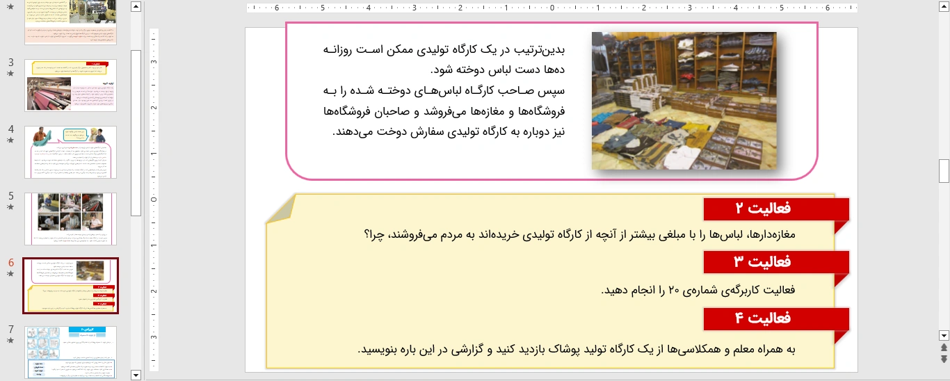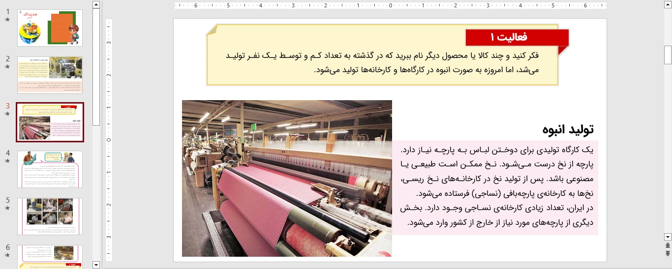 نمونه ای از اسلاید های پاورپوینت مطالعات اجتماعی ششم درس شانزدهم – لباس از تولید تا مصرف