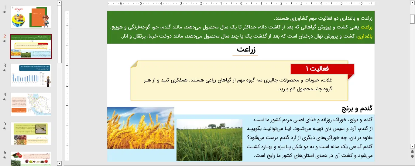جزئیات و دانلود پاورپوینت مطالعات اجتماعی ششم درس ششم – محصولات کشاورزی از تولید تا مصرف – سال تحصیلی 1405-1404