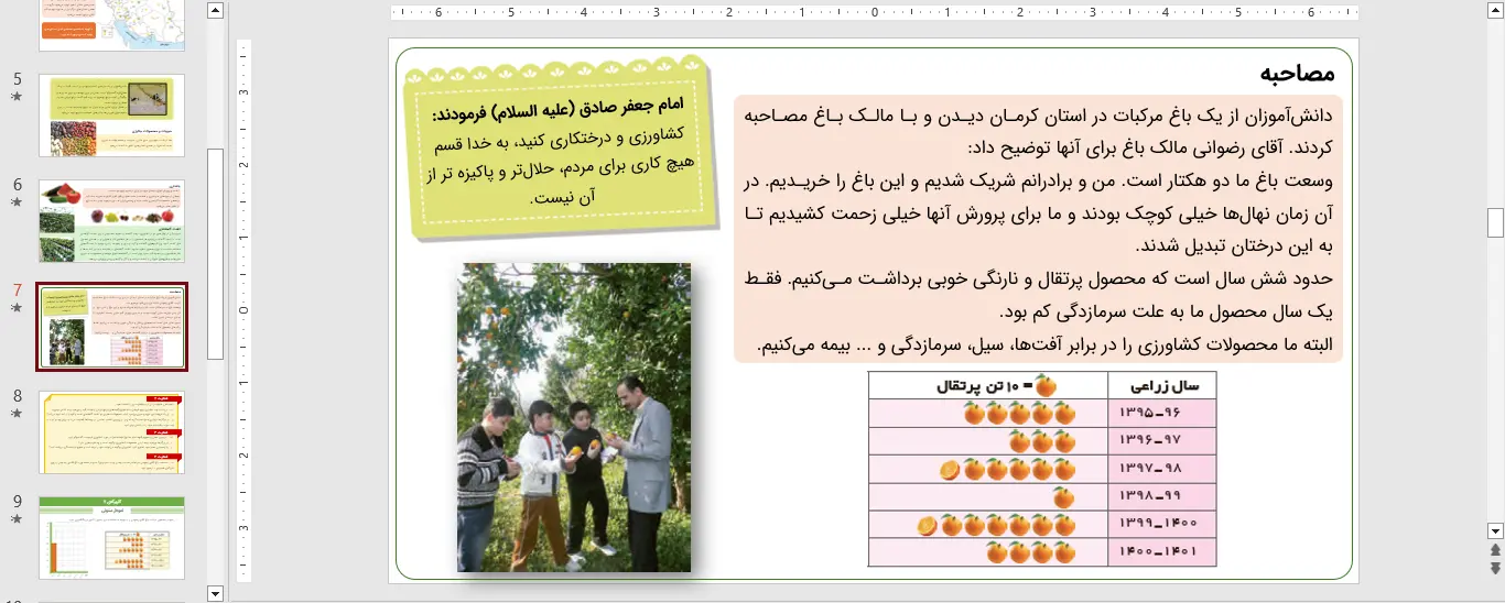 نمونه ای از اسلاید های پاورپوینت مطالعات اجتماعی ششم درس ششم – محصولات کشاورزی از تولید تا مصرف