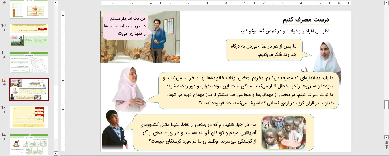 این پاورپوینت مطالعات اجتماعی ششم در قالب pptx. یا همان ppt. قابل دانلود میباشد. پاورپوینت مطالعات اجتماعی ششم درس ششم – محصولات کشاورزی از تولید تا مصرف در محیط Microsoft Powerpoint طراحی شده و در 15 اسلاید در اختیار شما قرار داده شده است. کیفیت و صحت اطلاعات مربوط به این پاورپوینت توسط تیم نشریه فارسی درس تایید شده است و شما با چند کلیک میتوانید به راحتی این پاورپوینت را دریافت کنید. درصورت بروز هرگونه اشکال میتوانید با ما در تماس باشید.