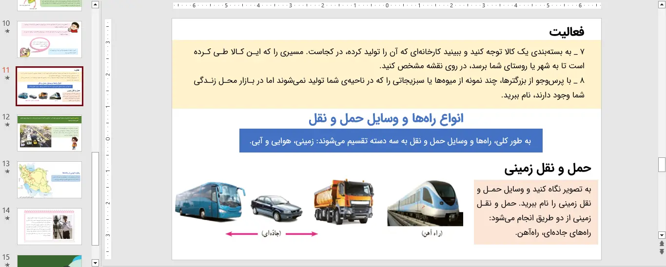 پاورپوینت مطالعات اجتماعی پنجم درس هشتم – راه ها و حمل و نقل (۱)