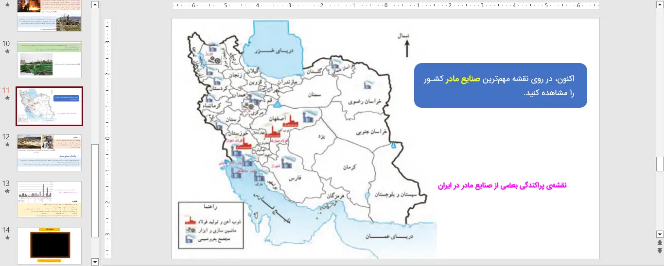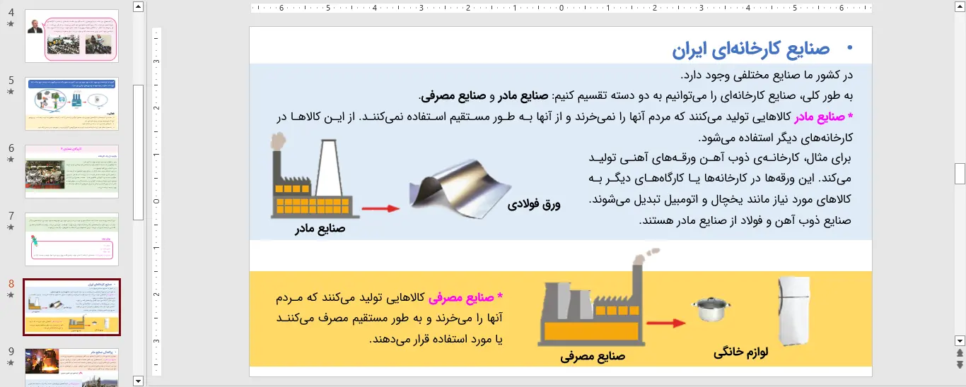 نمونه ای از اسلاید های پاورپوینت مطالعات اجتماعی پنجم درس هفتم – نواحی صنعتی مهم ایران
