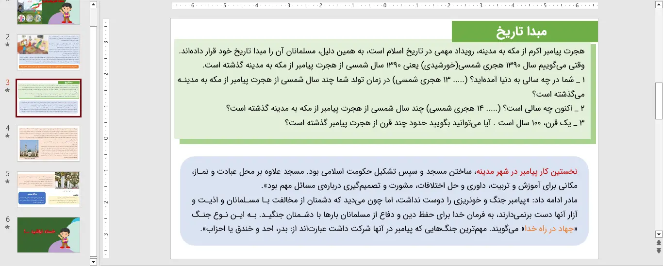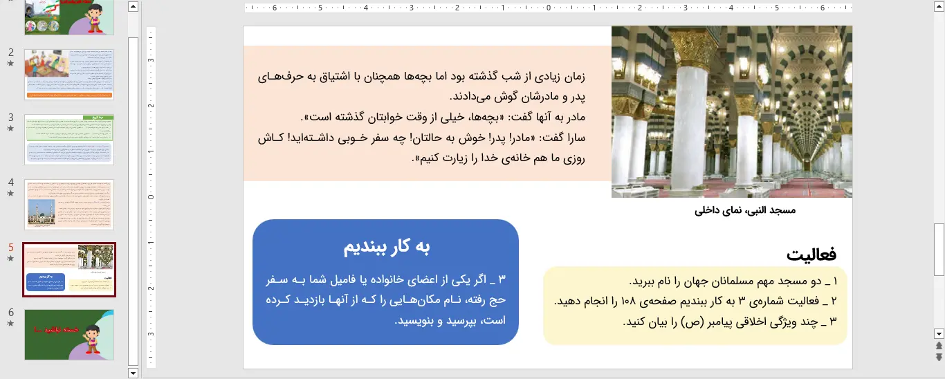 جزئیات و دانلود پاورپوینت مطالعات اجتماعی پنجم درس پانزدهم – مدینه، شهر پیامبر(ص) – سال تحصیلی 1405-1404