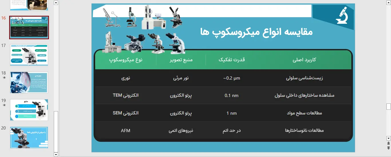 نمونه ای از اسلاید های پاورپوینت میکروسکوپ و انواع آن