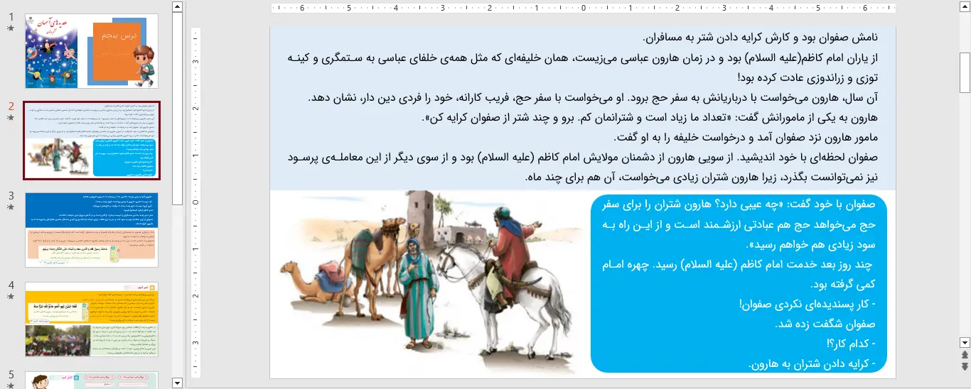نمونه ای از اسلاید های پاورپوینت هدیه های آسمان ششم درس 5 پنجم – شتربان با ایمان