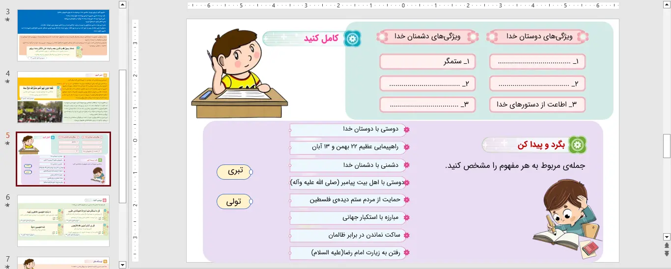 این پاورپوینت هدیه های آسمان ششم در قالب pptx. یا همان ppt. قابل دانلود میباشد. پاورپوینت هدیه های آسمان ششم درس 5 پنجم – شتربان با ایمان در محیط Microsoft Powerpoint طراحی شده و در 8 اسلاید در اختیار شما قرار داده شده است. کیفیت و صحت اطلاعات مربوط به این پاورپوینت توسط تیم نشریه فارسی درس تایید شده است و شما با چند کلیک میتوانید به راحتی این پاورپوینت را دریافت کنید. درصورت بروز هرگونه اشکال میتوانید با ما در تماس باشید.