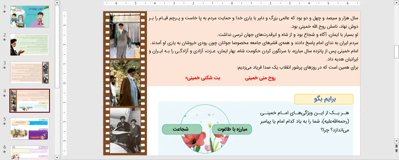 پاورپوینت ارائه شده در مورد هدیه های آسمان پنجم درس 14 چهاردهم – بزرگمرد تاریخ به شکل کامل و جامع تهیه و تدوین شده است. این پاورپوینت آماده با تصاویر گویا و جذابی که در خود دارد دانش آموزان را برای فراگیری و استفاده کامل از آن وا می دارد. یکی از بهترین پاورپوینت هایی که می توانید در بستر اینترنت در مورد موضوع ذکر شده پیدا کنید را در اختیار شما قرار داده ایم و امیدواریم از مطالب آن نهایت استفاده را ببرید. ارائه کامل و جذاب شما از اهداف مجموعه فارسی درس است و تلاش ما برداشتن قدم هایی هر چند کوچک در راستای اهداف شما است.
