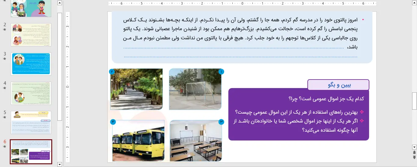 نمونه ای از اسلاید های پاورپوینت هدیه های آسمان پنجم درس 6 ششم – مال مردم