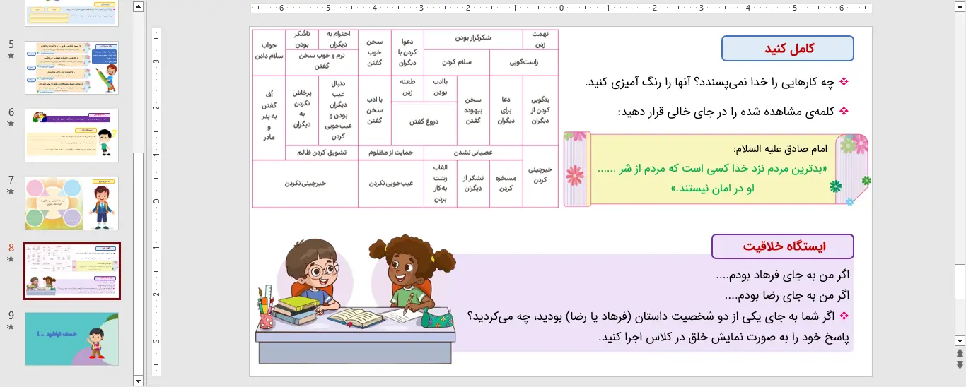 قسمتی از متن کتاب هدیه های آسمان پنجم درس هشتم: