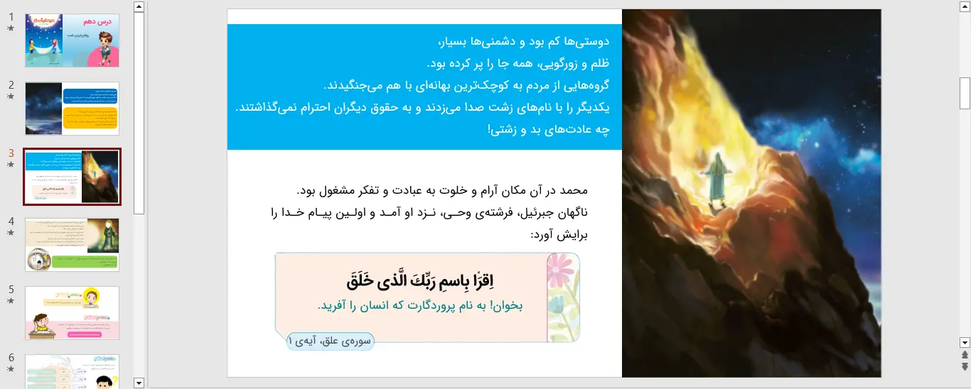 پاورپوینت ارائه شده در مورد هدیه های آسمان چهارم درس 10 دهم – روشنترین شب به شکل کامل و جامع تهیه و تدوین شده است. این پاورپوینت آماده با تصاویر گویا و جذابی که در خود دارد دانش آموزان را برای فراگیری و استفاده کامل از آن وا می دارد. یکی از بهترین پاورپوینت هایی که می توانید در بستر اینترنت در مورد موضوع ذکر شده پیدا کنید را در اختیار شما قرار داده ایم و امیدواریم از مطالب آن نهایت استفاده را ببرید. ارائه کامل و جذاب شما از اهداف مجموعه فارسی درس است و تلاش ما برداشتن قدم هایی هر چند کوچک در راستای اهداف شما است.