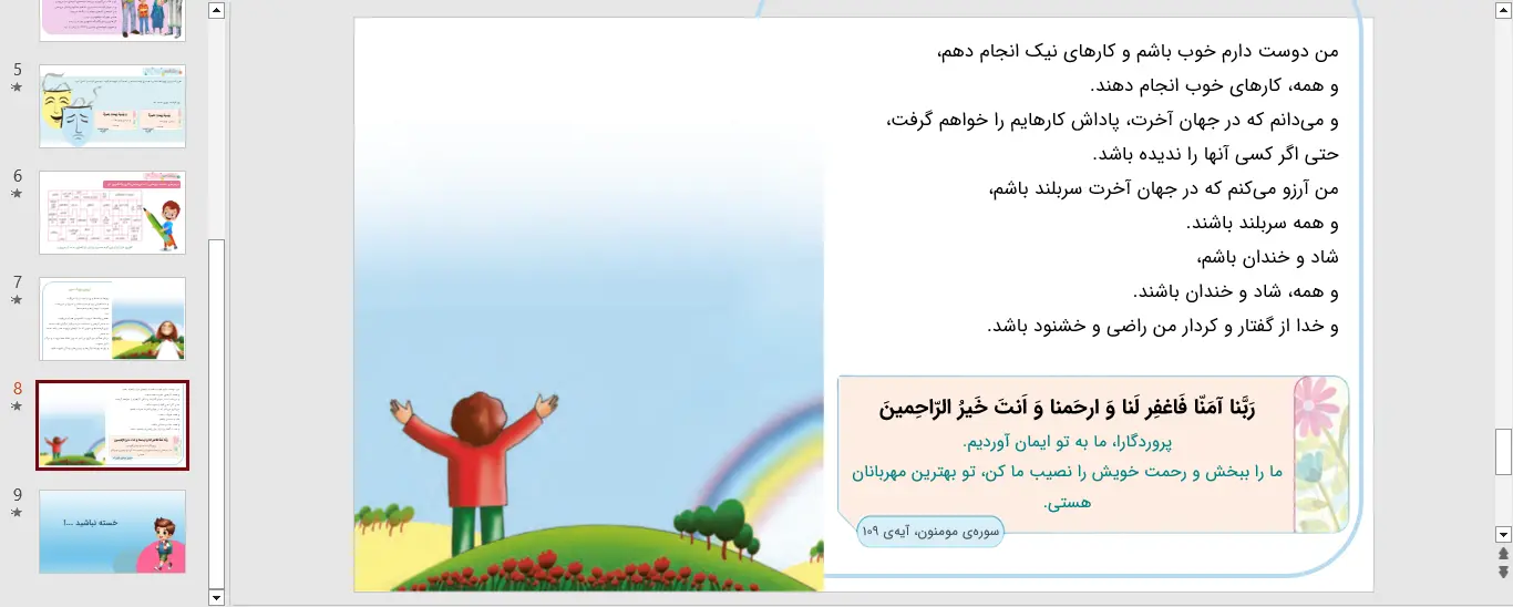 خدای مهربان، تو به ما کمک کردی تا خیلی خوب درس بخوانیم.